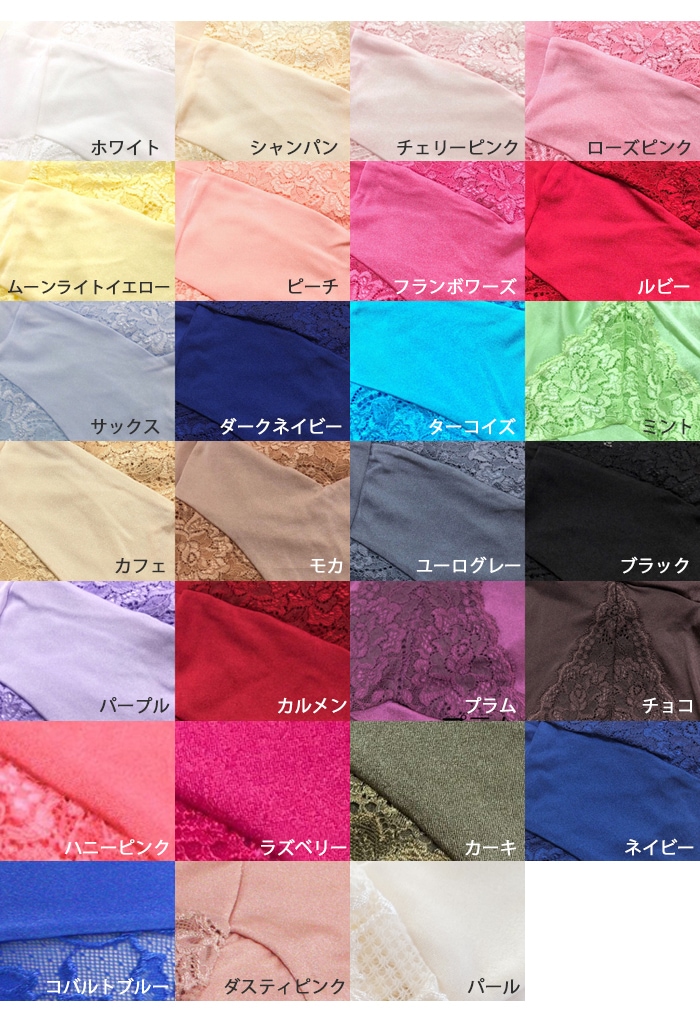 以上定番カラーです。(ネイビーは少し濃いダークネイビーになります)スポットカラーは随時入荷します。●ゴージャスなストレッチレースを前中心と後中心のみで剥いでいますので、ワキのハギは取り去った設計にしました。!●前身センターに映るダイヤ型はコットンの裏クロッチから立ち上がったヘア透け防止で、腹部の肌当たりも優しいです。この商品はスッポリとヒップを包み、更にヒップ中心にギャザーを入れ、スカートは勿論のこと、パンツスタイルにも適した仕様に仕上げました。サイズ